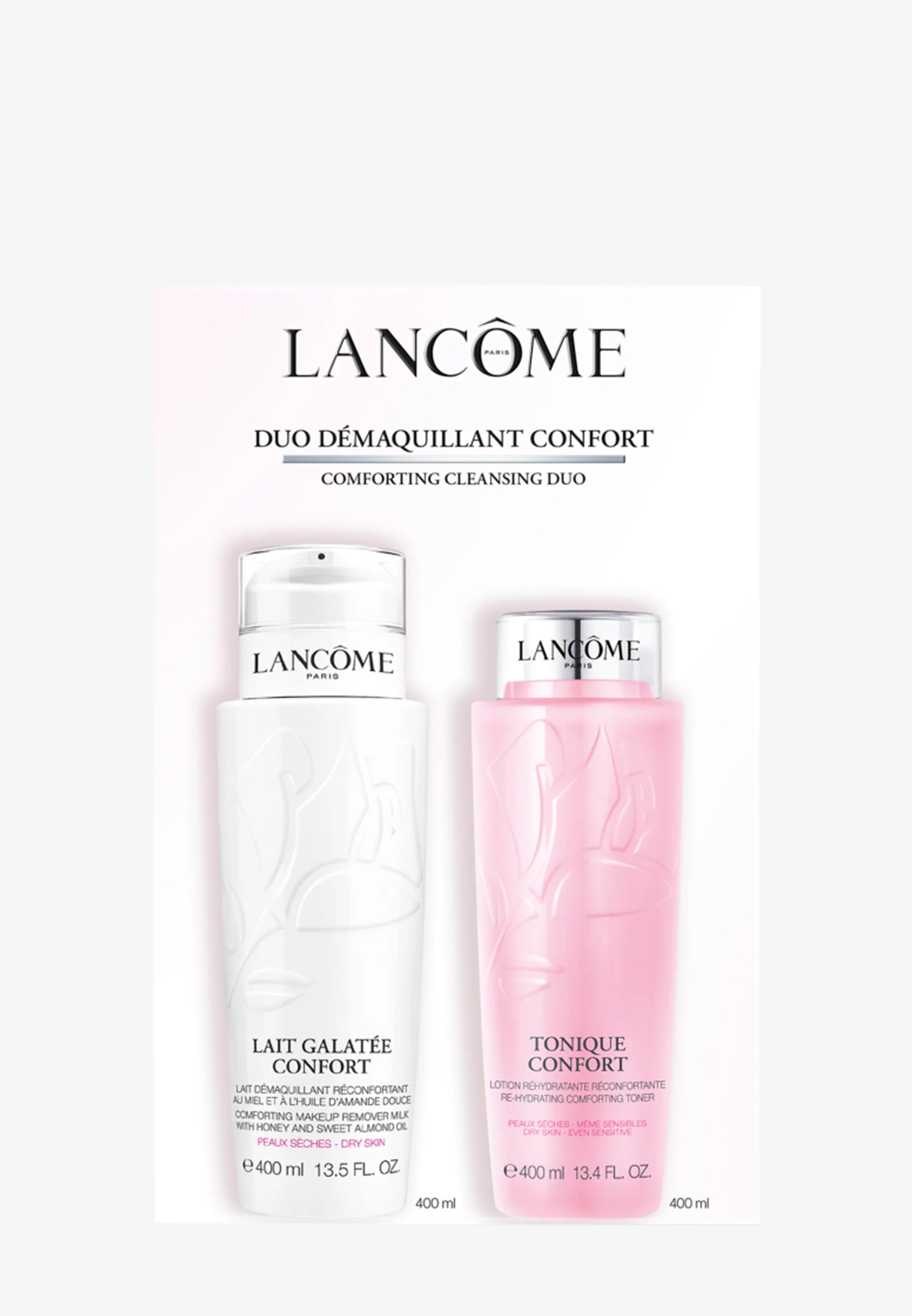 LANCOME CONFORT CLEANSING SET MAKE UP REMOVER MILK 400ML+ REHYDRATING TONIC 400ML